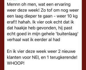 - Ik ben beter in mijn werk geworden, omdat het nóg meer over de klant mag gaan doordat ik weer een aantal stukken van mezelf heb aangekeken en geheeld