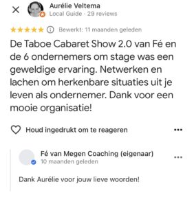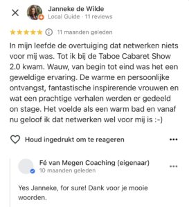 Ohhh echt AL HET GOEDE komt uit mijn netwerk. Er zullen 150 ondernemers in de zaal zitten. Onze activiteiten en netwerkmomenten zijn gericht om werkelijk met elkaar te connecten. Dus niet alleen 'wat doe jij blabla'(mag ook hoor ;-)